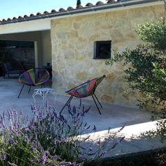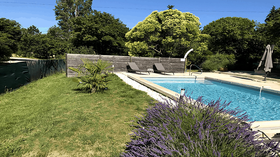 Côté jardin, notre maison de vacances à Bedoin est très agréable avec son jardin clos de 1300 m². Profitez de la piscine chauffée de 8x4m avec alarme et éclairage coloré d'ambiance nocturne, de la terrasse, du terrain de boules et de l'espace de verdure idéal pour les enfants.